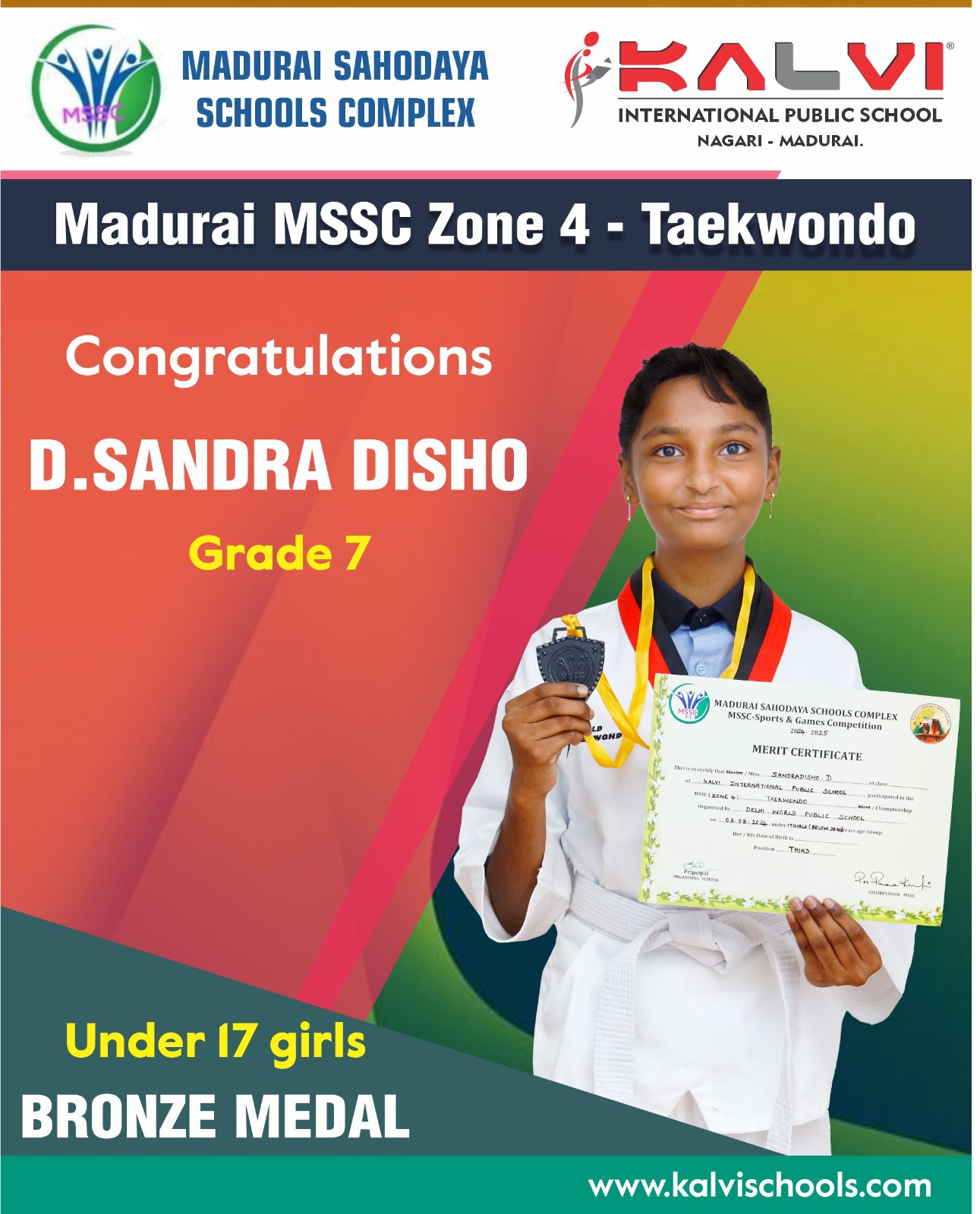 Bronze medalist in MSSC Zone 4 Taekwondo Competition